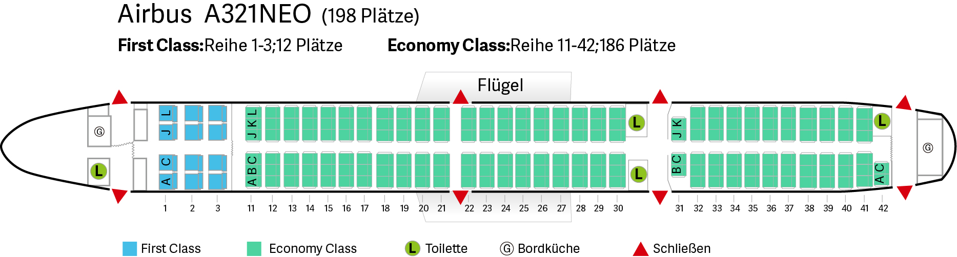 | Flugzeug | Gesamtzahl der Sitzplätze | Business Class | Economy Class |