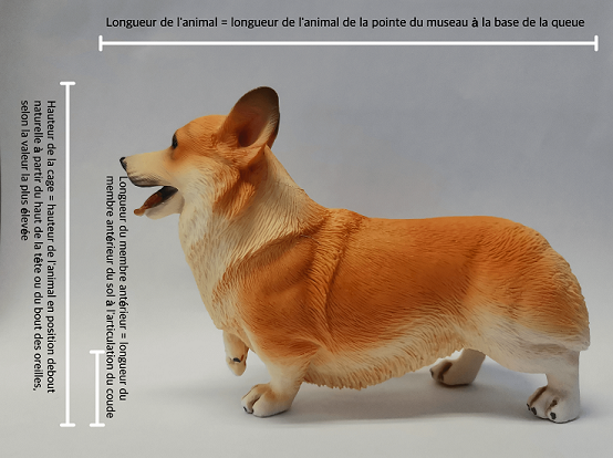 Les dimensions de la cage doivent également permettre à l'animal de se lever, de se retourner et de s'allonger dans une position naturelle.