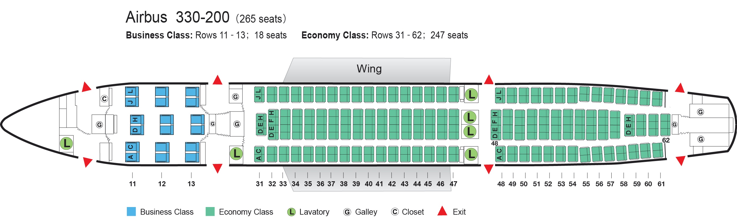 | Total Seats | Business Class | Premium Economy Class | Economy Class |